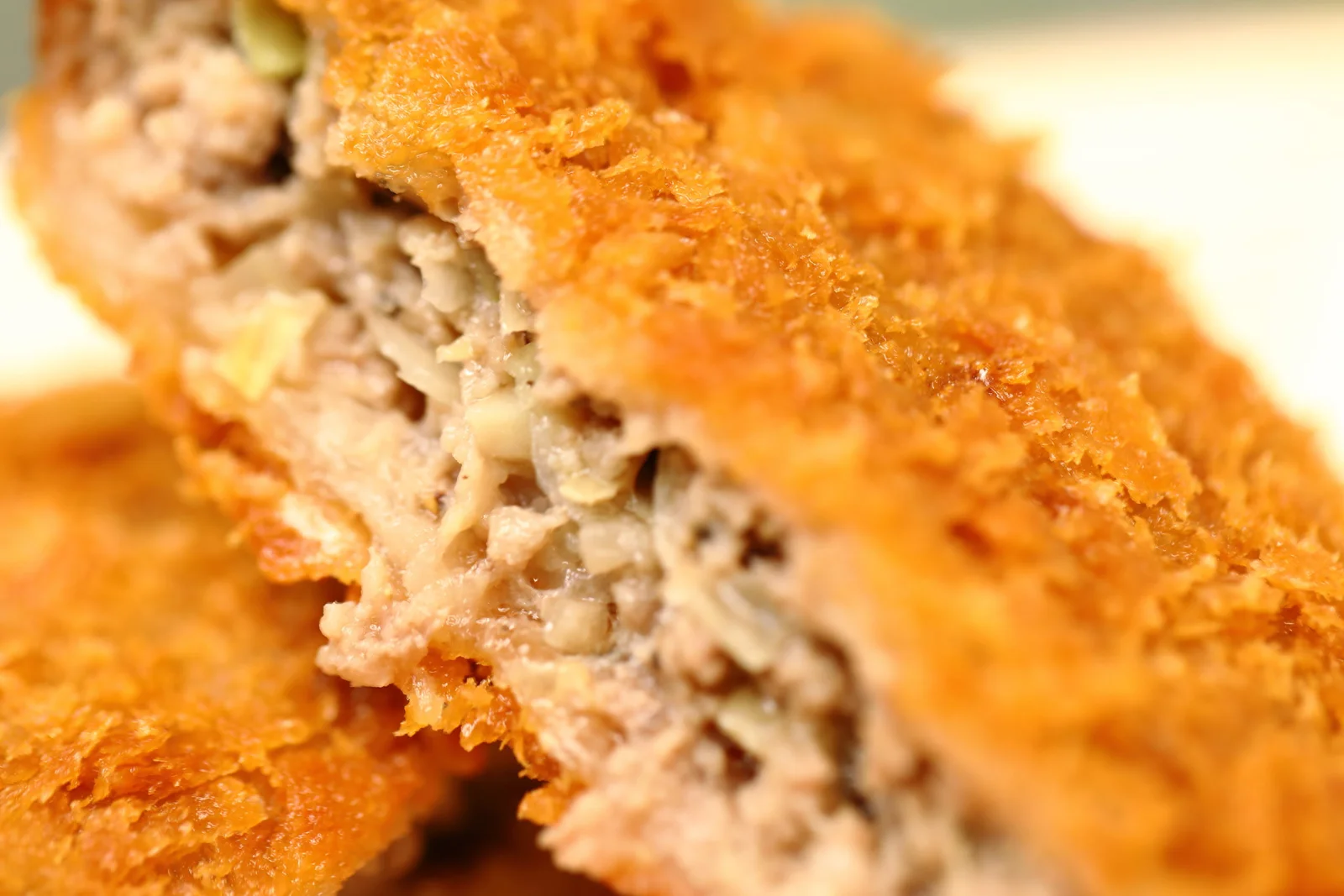 当店の牛・豚のミンチとキャベツ、玉ねぎを使用した銀閣寺大西の手作りミンチカツです!